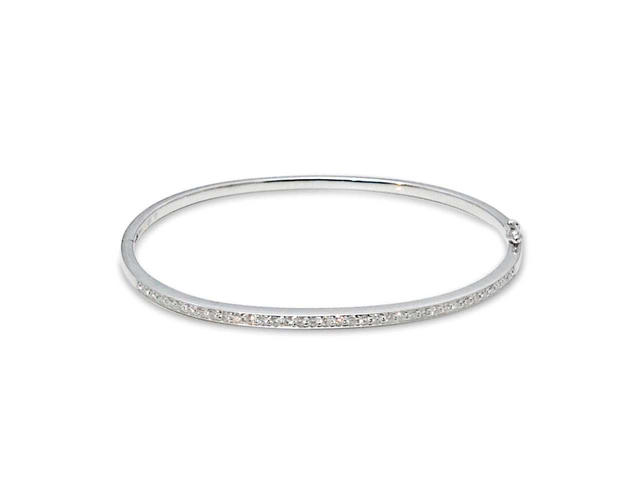 Beautiful 36 diamonds half-paved 18 carats white gold bangle bracelet.