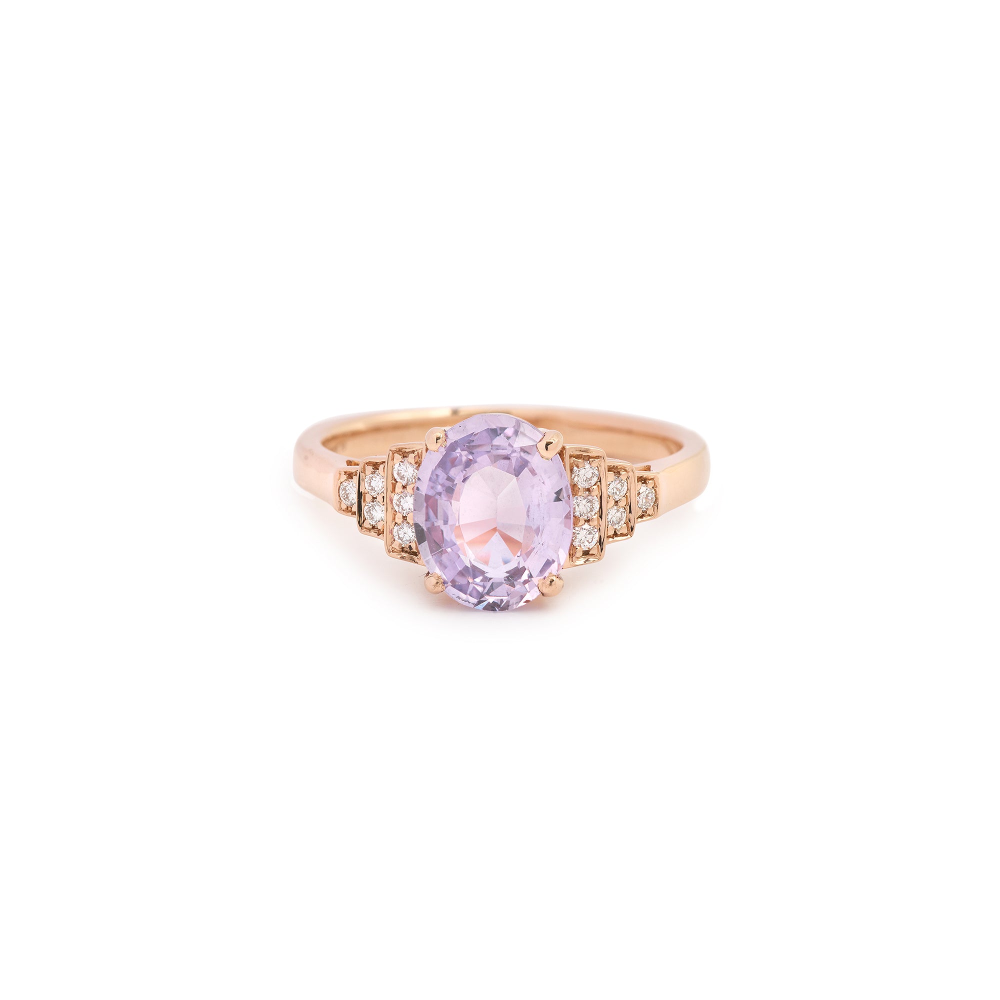 Lovely rose gold ring paved with brilliant-cut diamonds and a lilac sapphire.