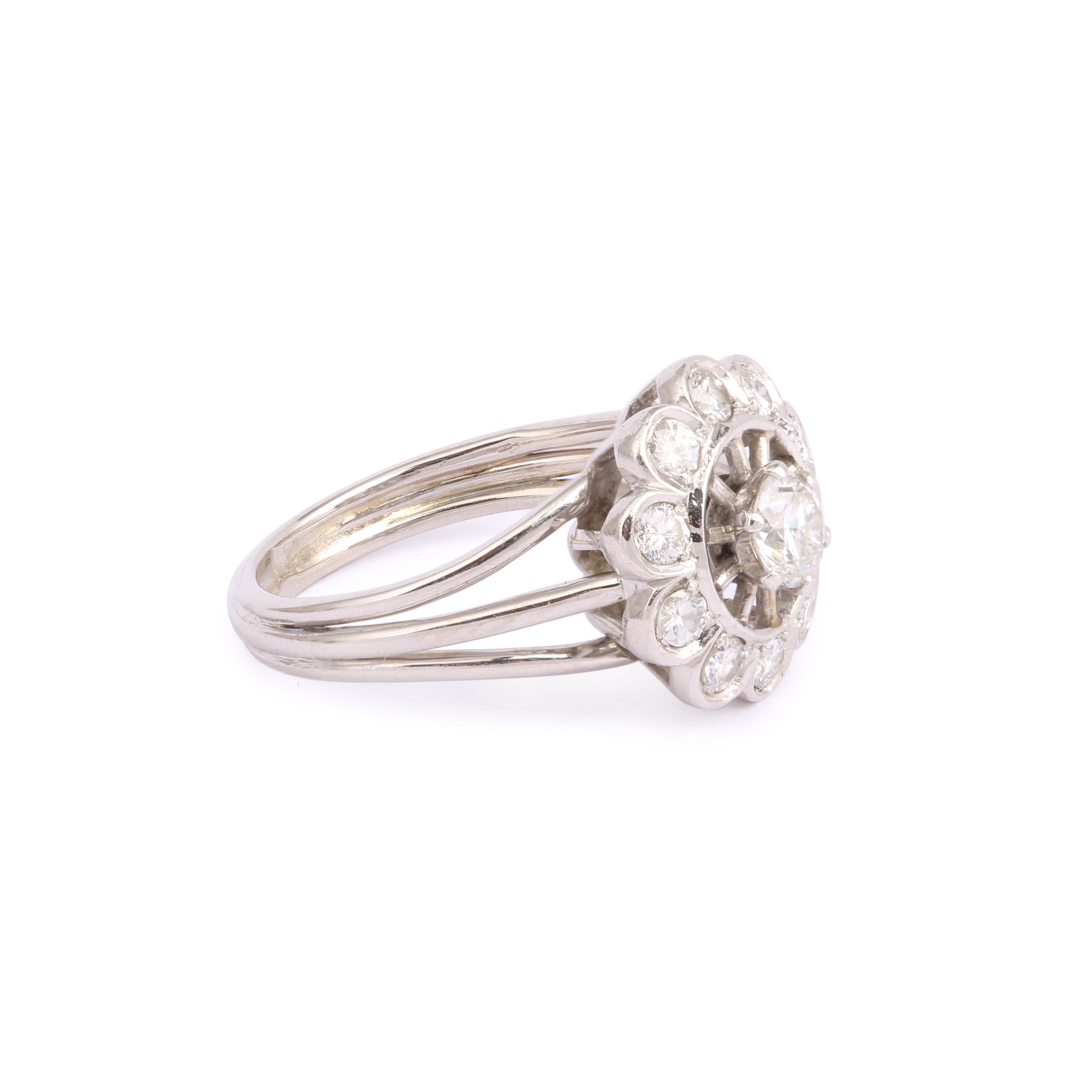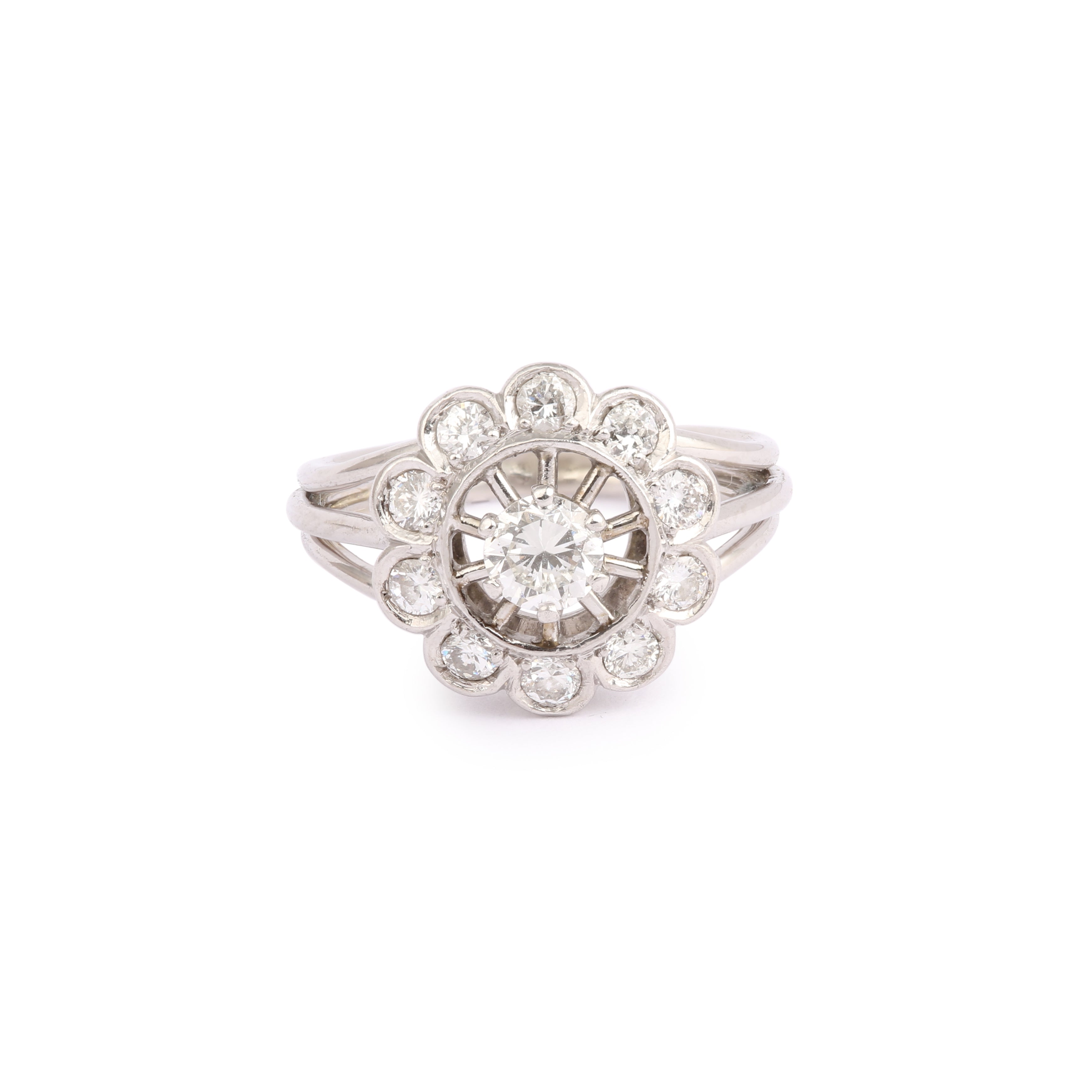 Beautiful daisy in white gold and platinum set with brilliant-cut diamonds.