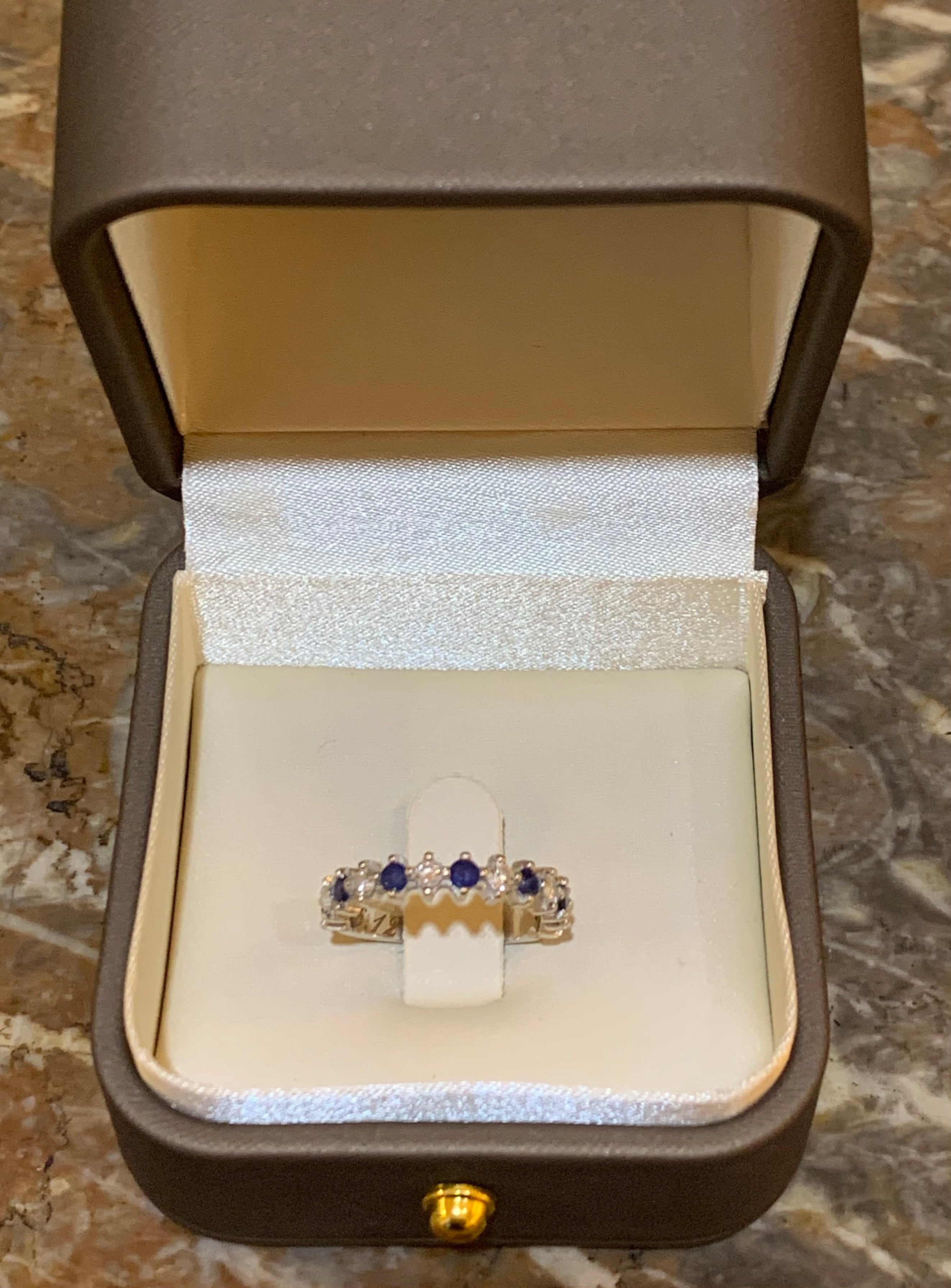 White gold wedding band set with sapphires and diamonds.