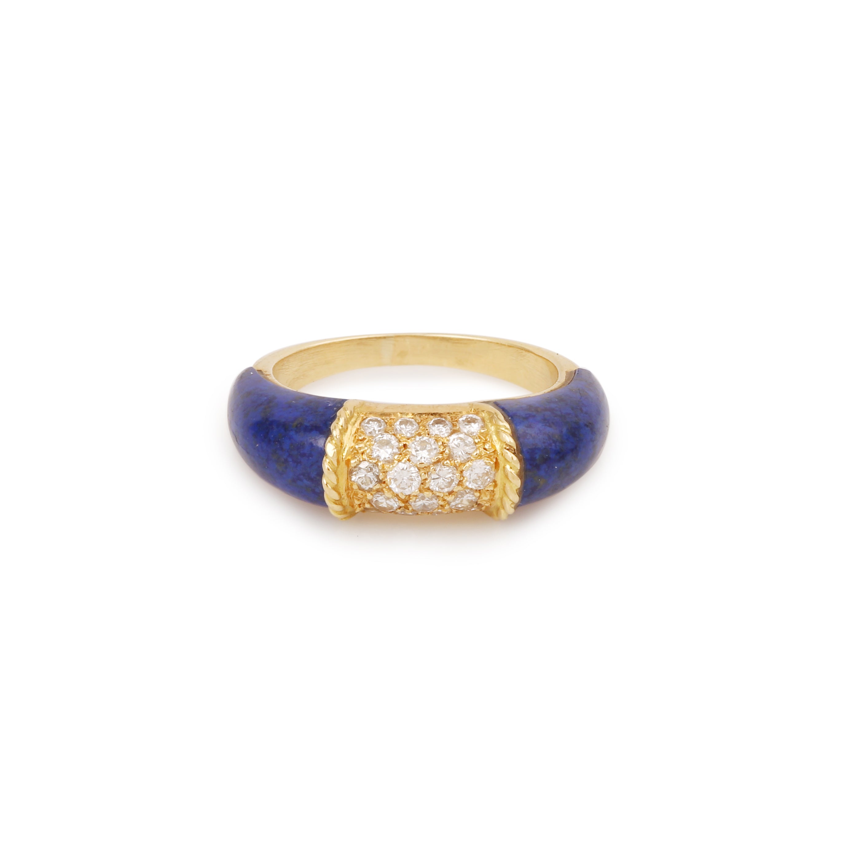 Band ring in yellow gold set with diamonds and lapis lazuli.