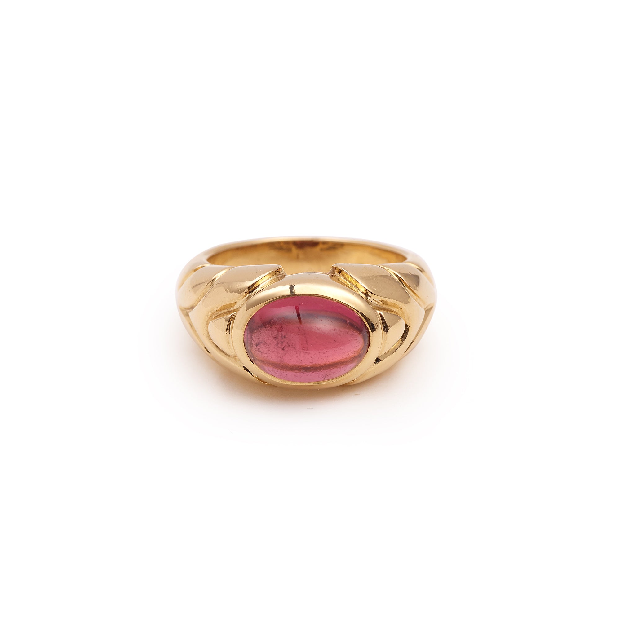 Bague Bulgari en or jaune sertie d’une tourmaline en taille cabochon.