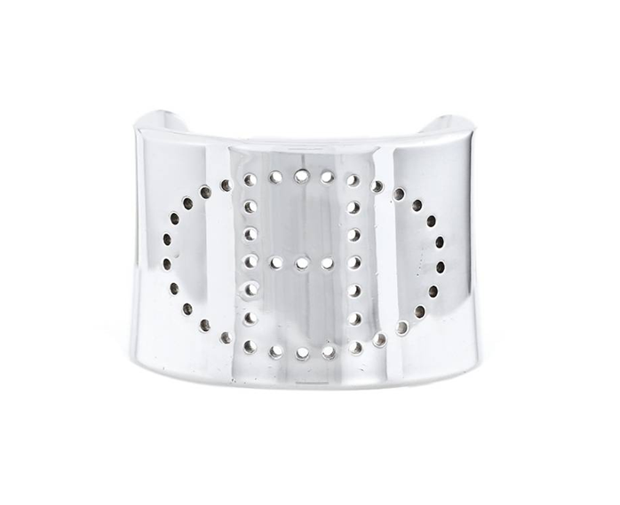 Bracelet manchette Hermès "Eclipse" en argent massif ajouré d'un H dans un oval.