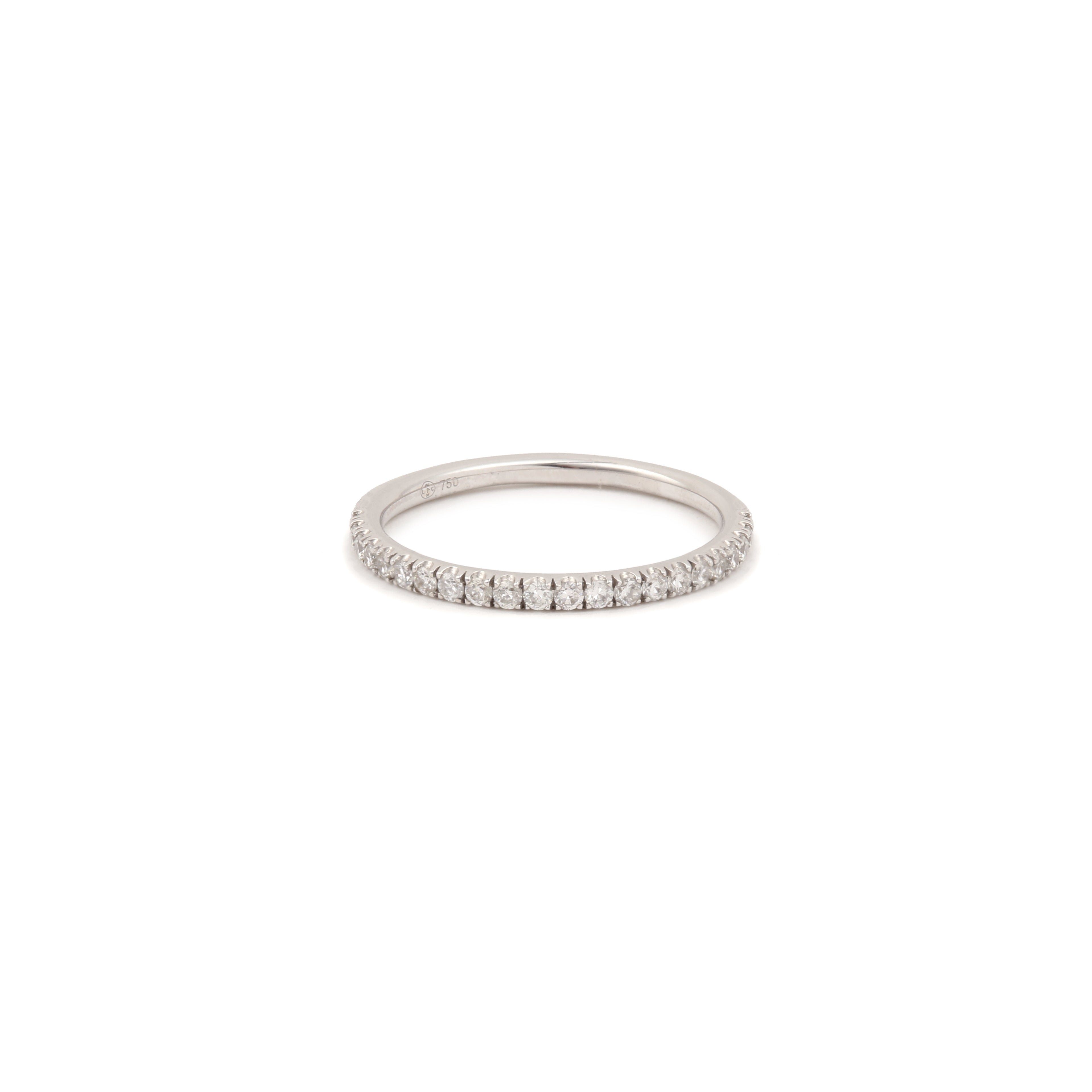 Ravissante alliance demi tour sertie de 21 diamants en or gris.