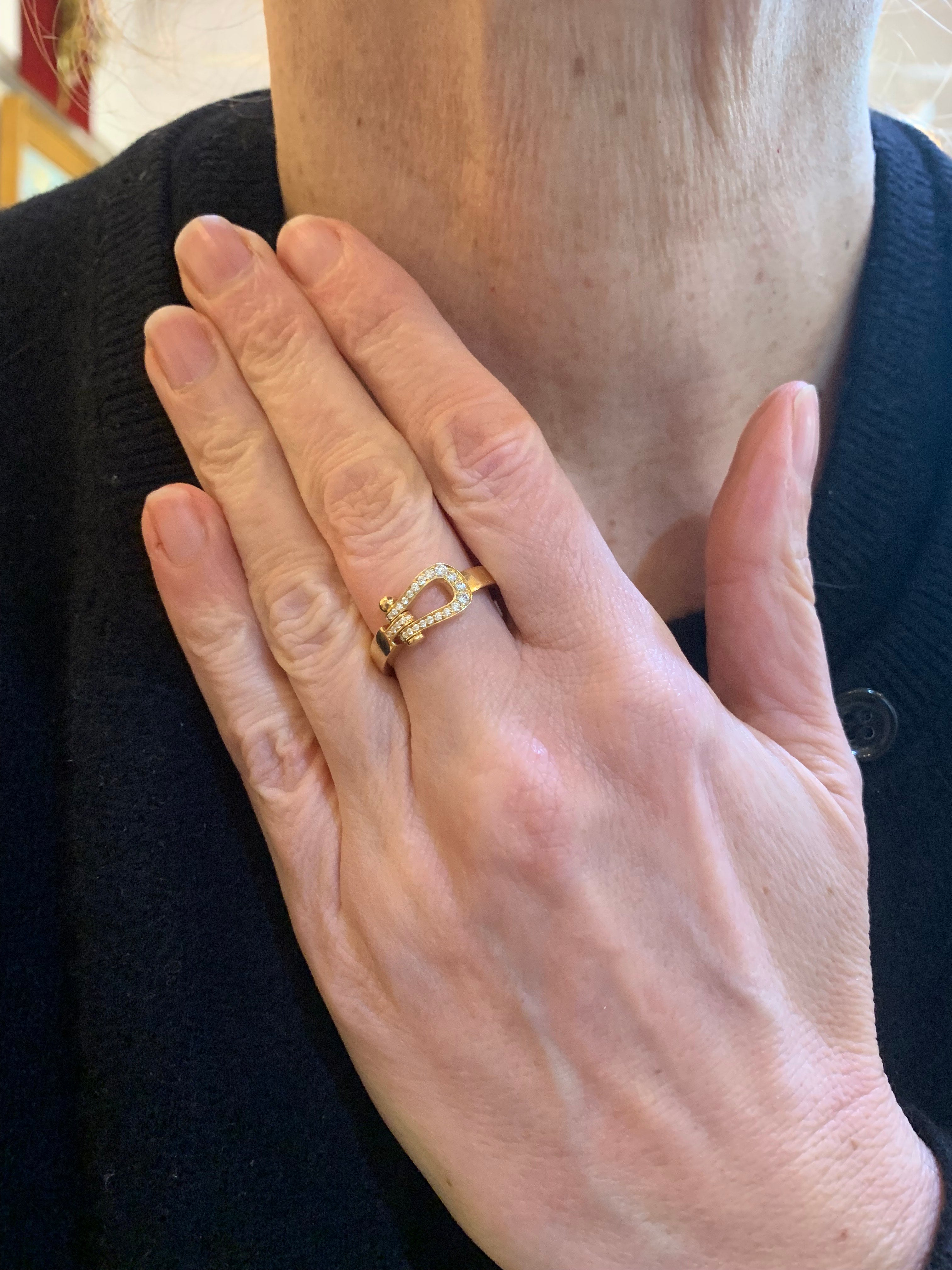 Bague Fred de la collection Force 10, moyen modèle en or jaune semi-pavé de 27 diamants.