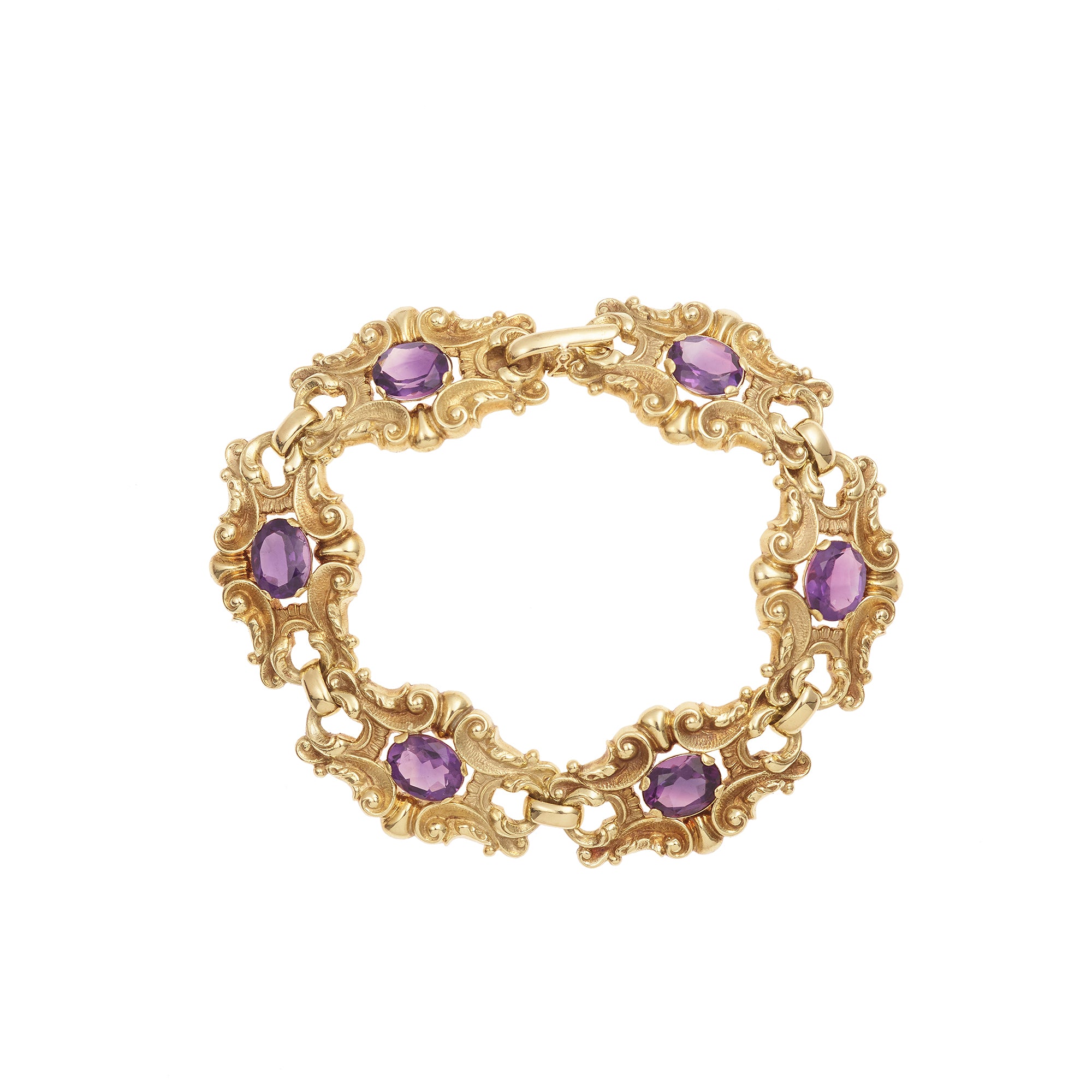 Magnifique bracelet de la fin du 19ème siècle en or jaune serti de 6 améthystes ovales.