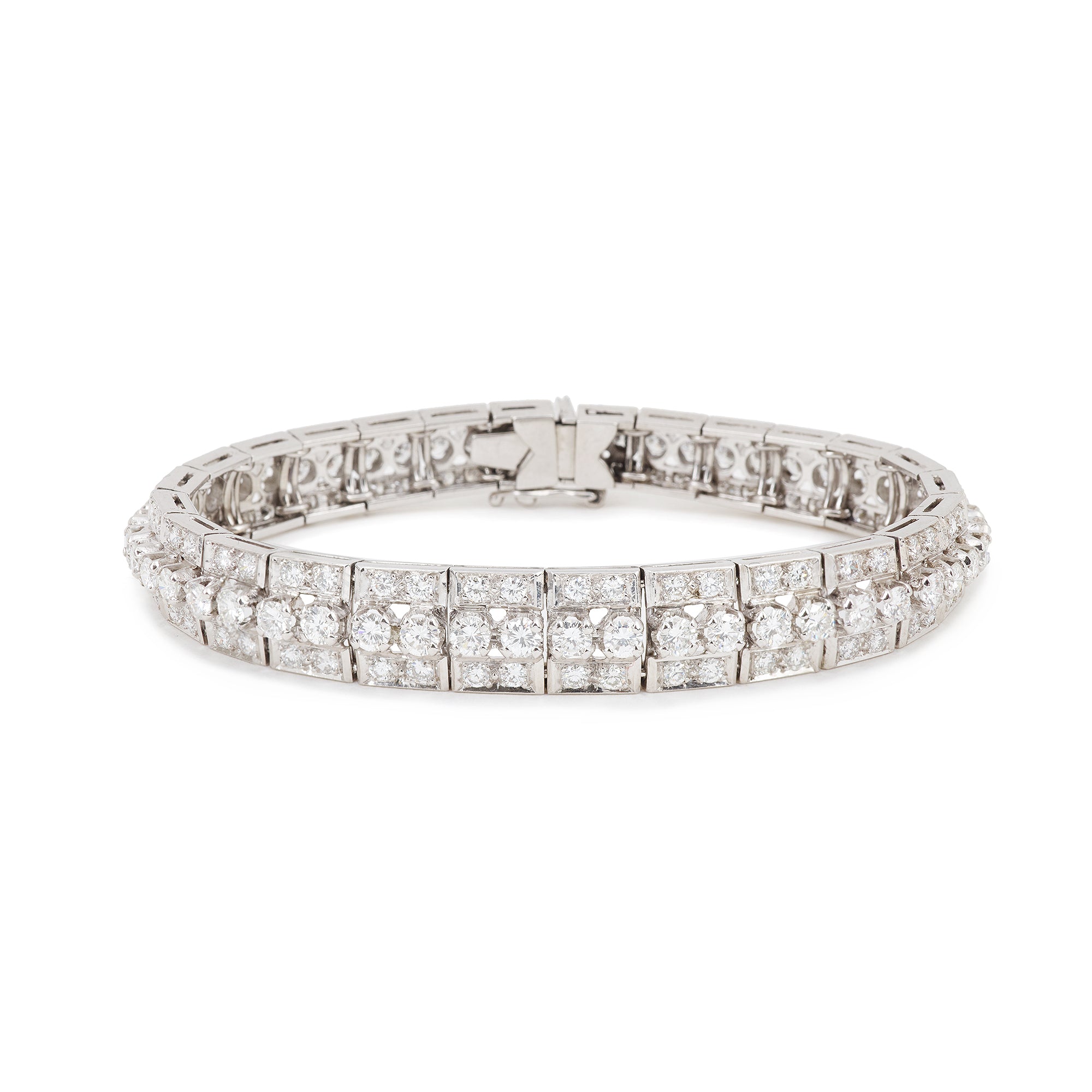 Magnifique bracelet rétro articulé en platine et or gris serti de diamants.