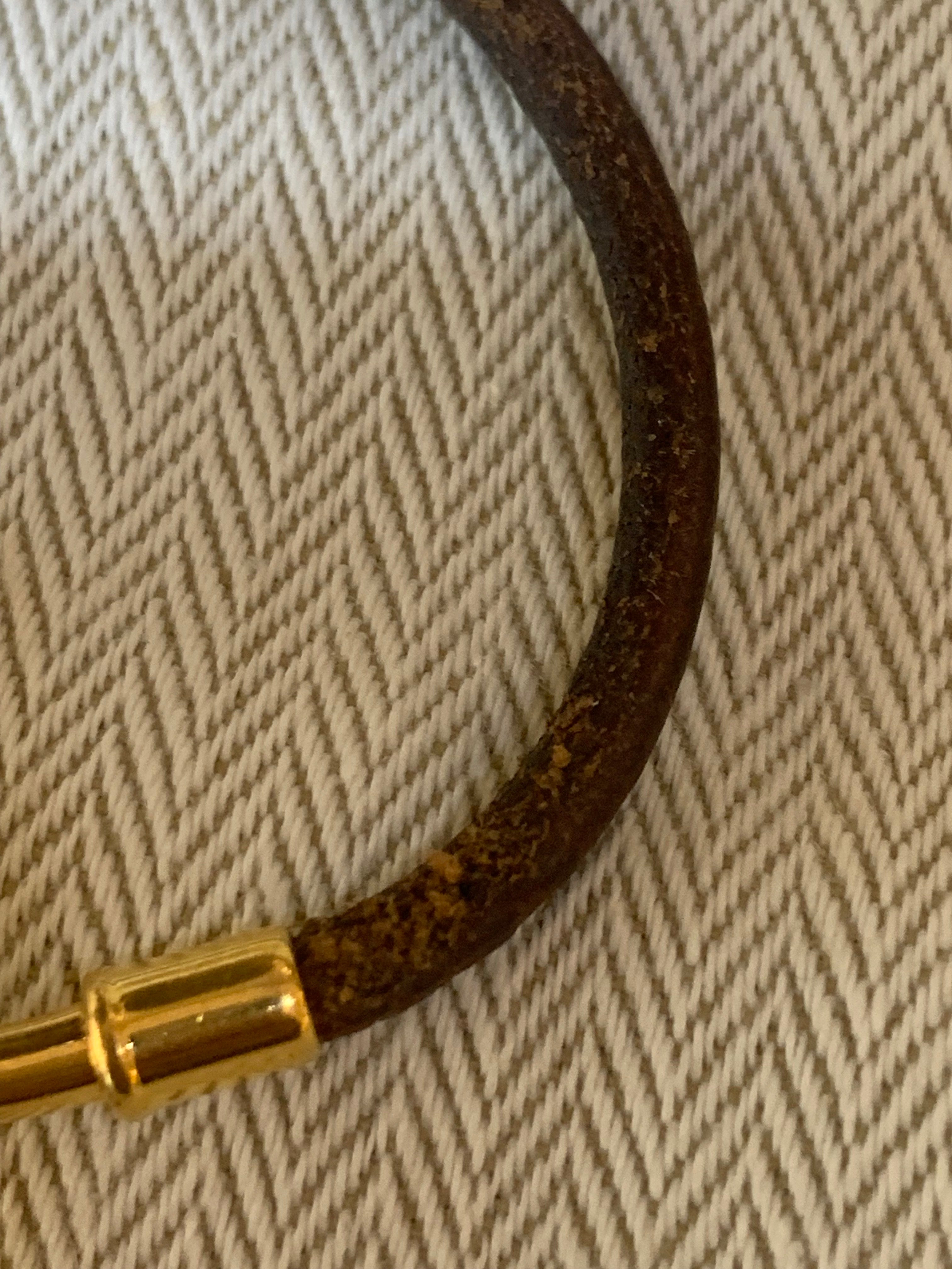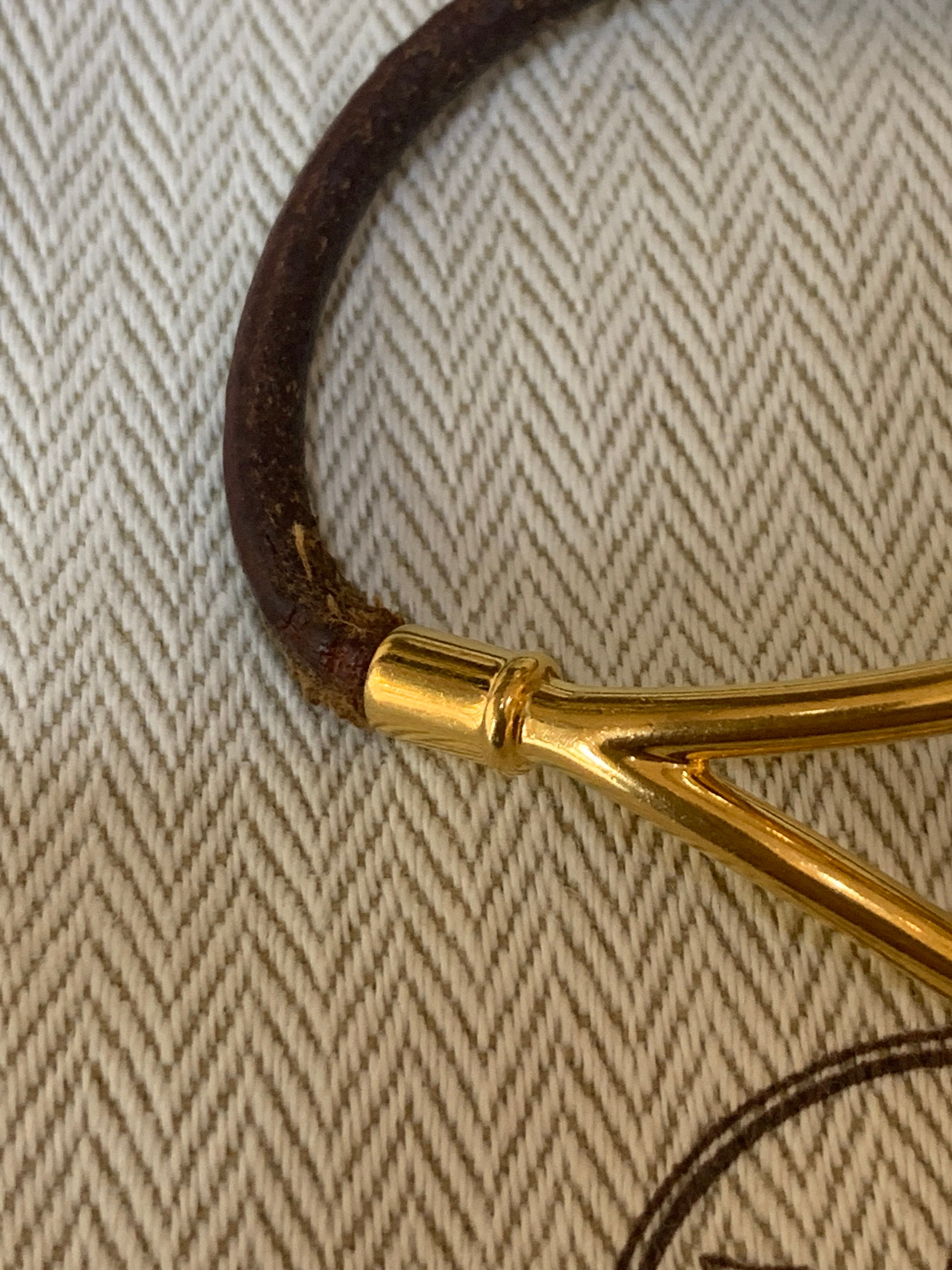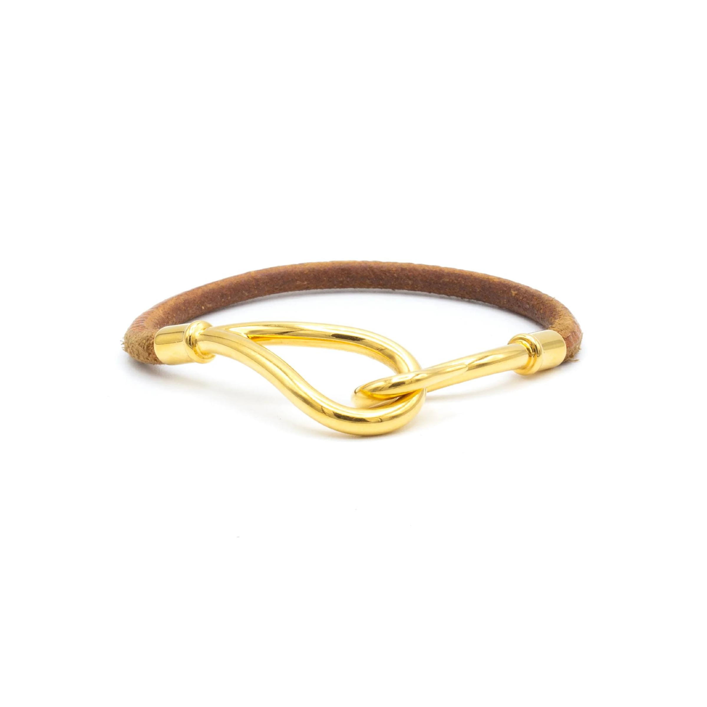 Bracelet signé Hermès de la collection Jumbo en cuir et finition doré.
