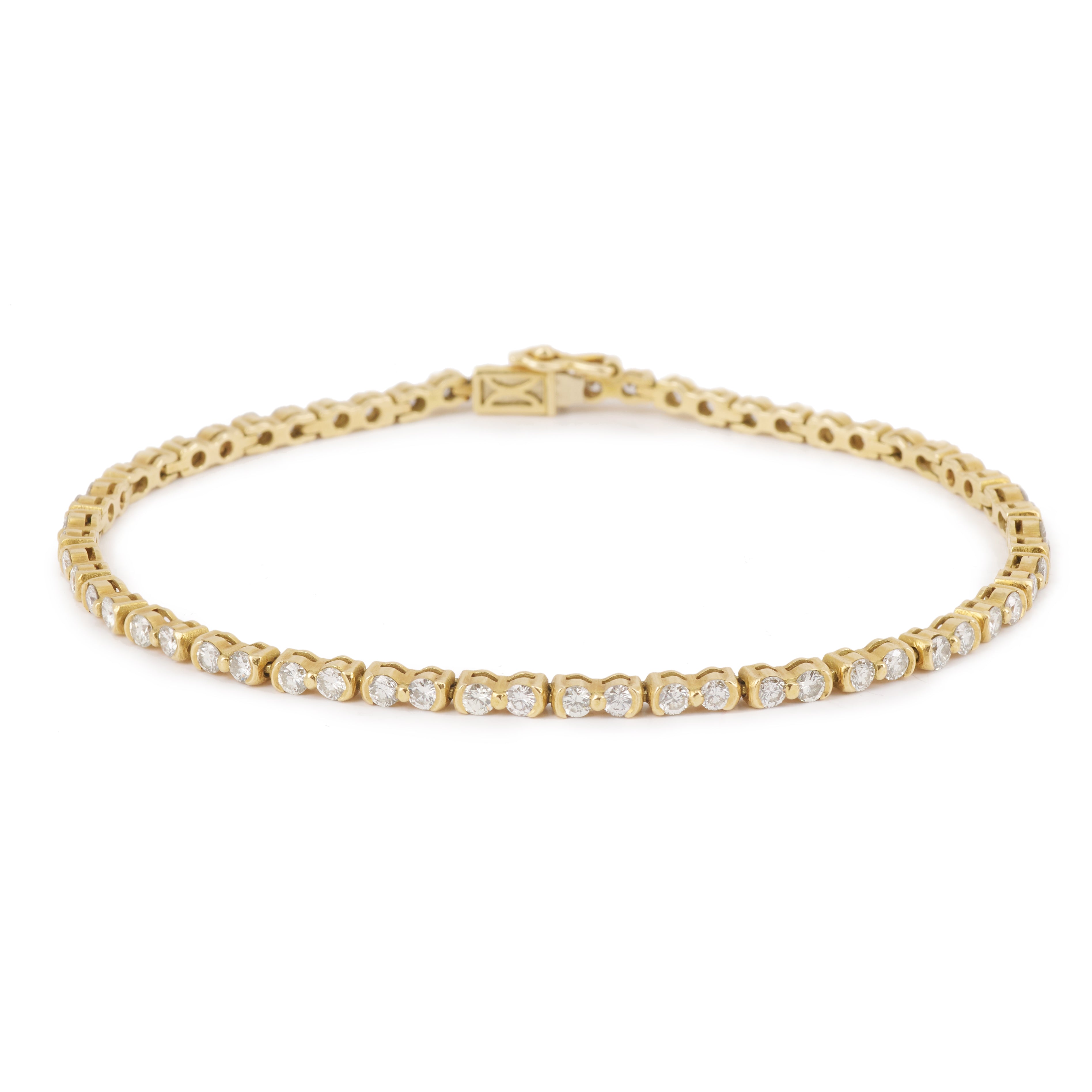 Elégant bracelet ligne Chaumet en or jaune 18 carats serti de 60 diamants taille brillant.