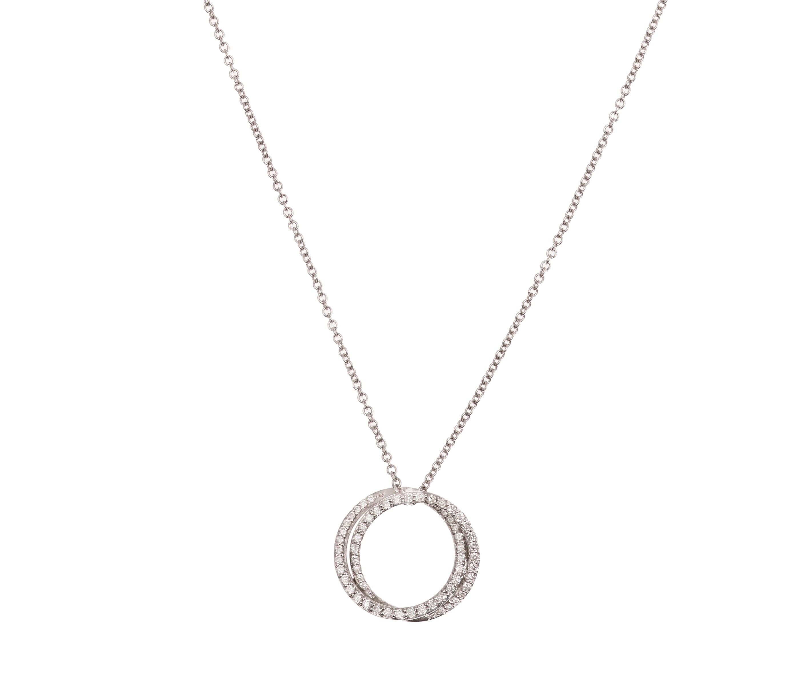 Très élégant collier présentant un double cercle pavé de diamants, sur une monture en or gris.